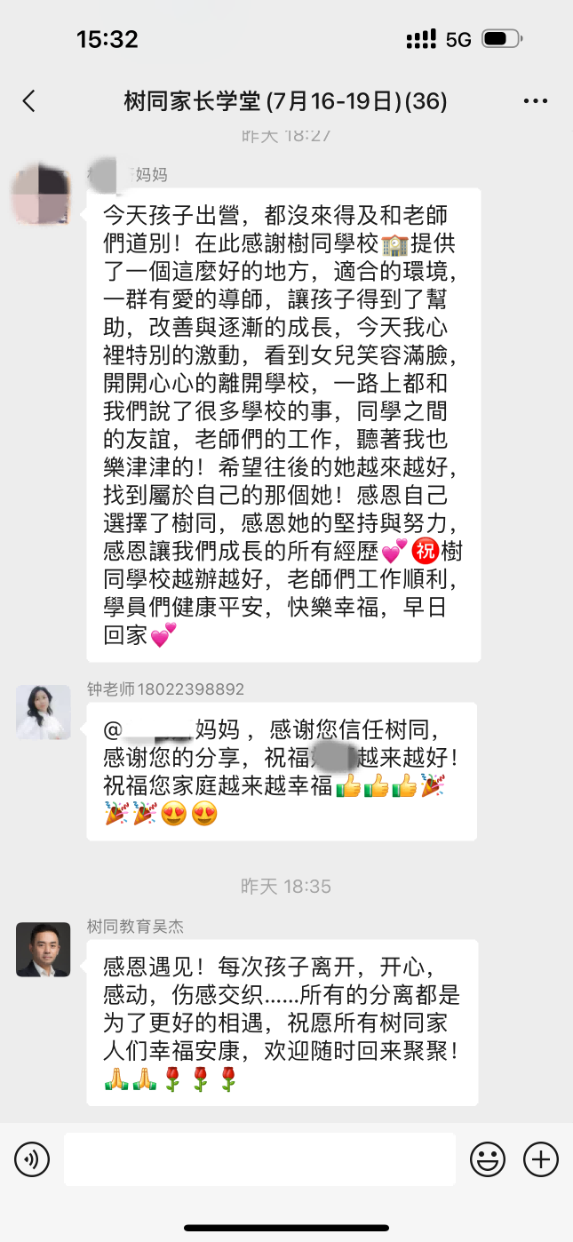 许多家长担心:"孩子在学校表现好,回家会不会打回原形?"这正是树同教育的差异化价值所在。他们采用"孩子+家长双轨动力"调整体系,在矫正孩子的同时,通过专业指导让父母学会正确沟通。当父母理解到孩子叛逆背后可能是"缺少理解与支持"的呐喊,家庭互动模式的改变才能真正发生。